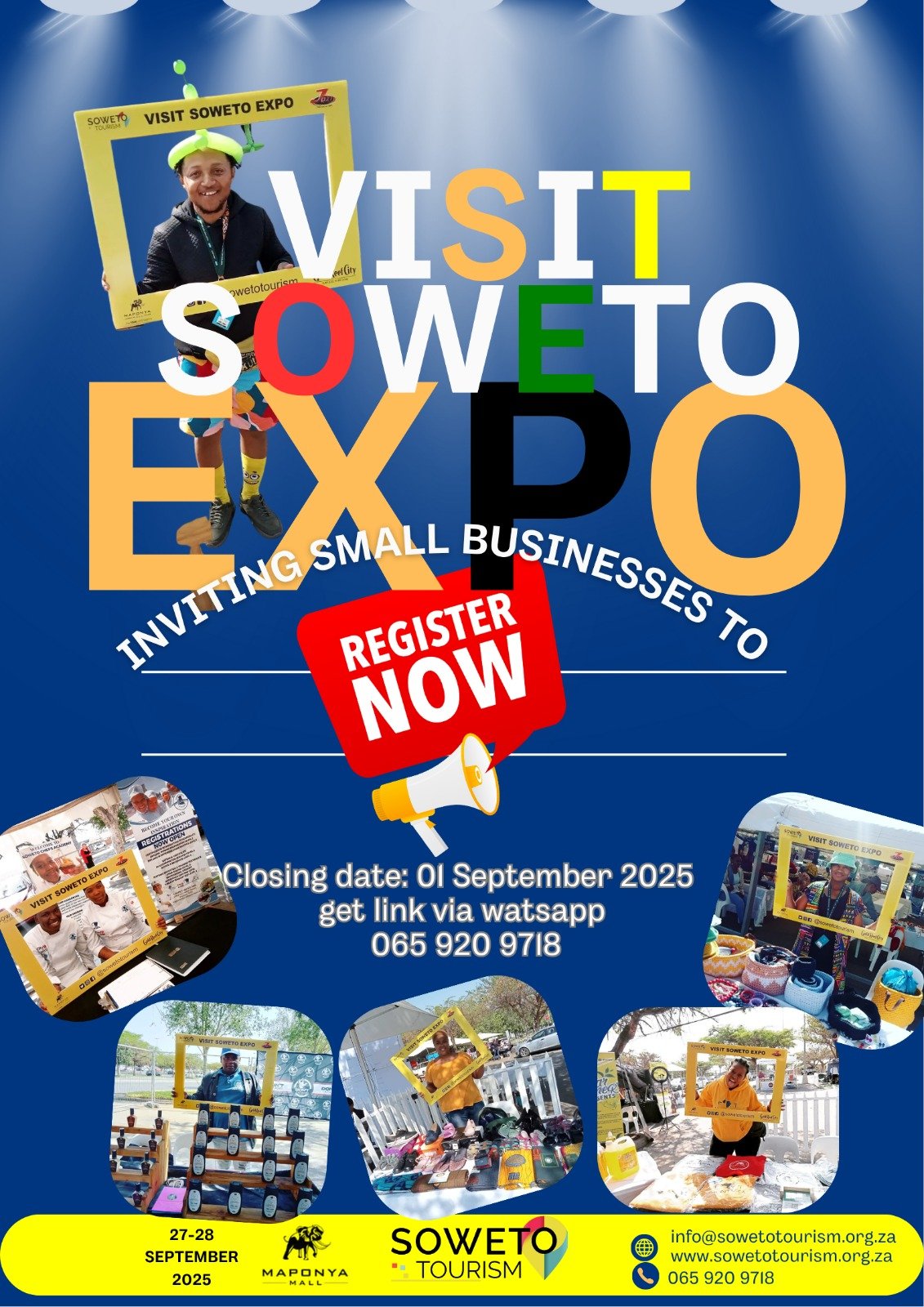Inviting Soweto based small businesses to exhibit and market their products and services at the annual Visit Soweto Expo 2025 at Maponya Mall.